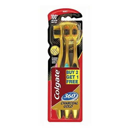 Colgate 360 Degree Charcoal Gold Toothbrush, Buy 2 Get 1 Free